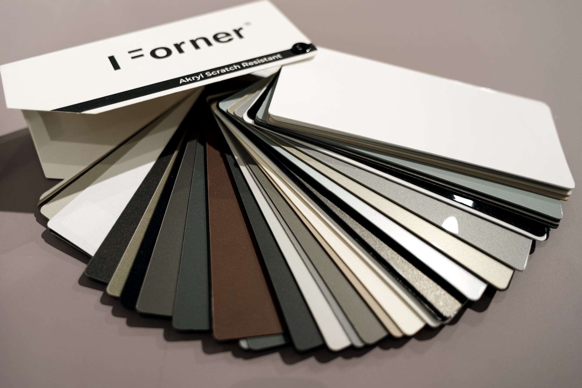 Forner Akryl SR i Forner Akryl SR mat – wysokiej jakości płyty akrylowe o lustrzanym połysku i głębokim macie, które cechuje wyjątkowa odporność na zarysowania i odciski palców.