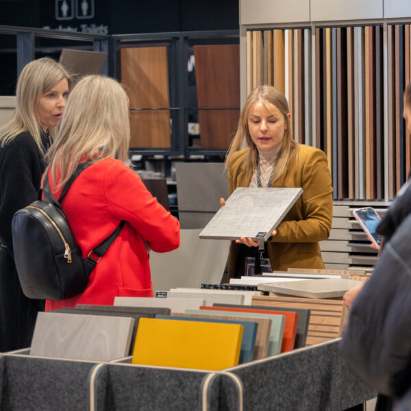 To był wyjątkowy mariaż sztuki i materiałów meblarskich, o czym możecie przeczytać w tekście traktującym o Warsaw Home, a my tylko dodamy, że wcześniej materiały meblarskie stanowiły tło dla wystawy prac artystów UAP – „Drobne przyjemności” – która miała w ramach Łódź Design Festiwal 2023.